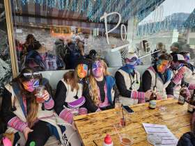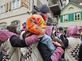 Schwyz – In früher Stund trafen sich die Schminkgrüppli an verschiedenen Standorten, manche besser gelegen als andere, um sich auf den SchmuDo vorzubereiten. Wie es bekanntlich so ist, kann Pinselwasser verschiedenste Farben annehmen. So kann es schonmal vorkommen, dass leckerer Passoaorangensaft mit Schminkwasser verwechselt wird.